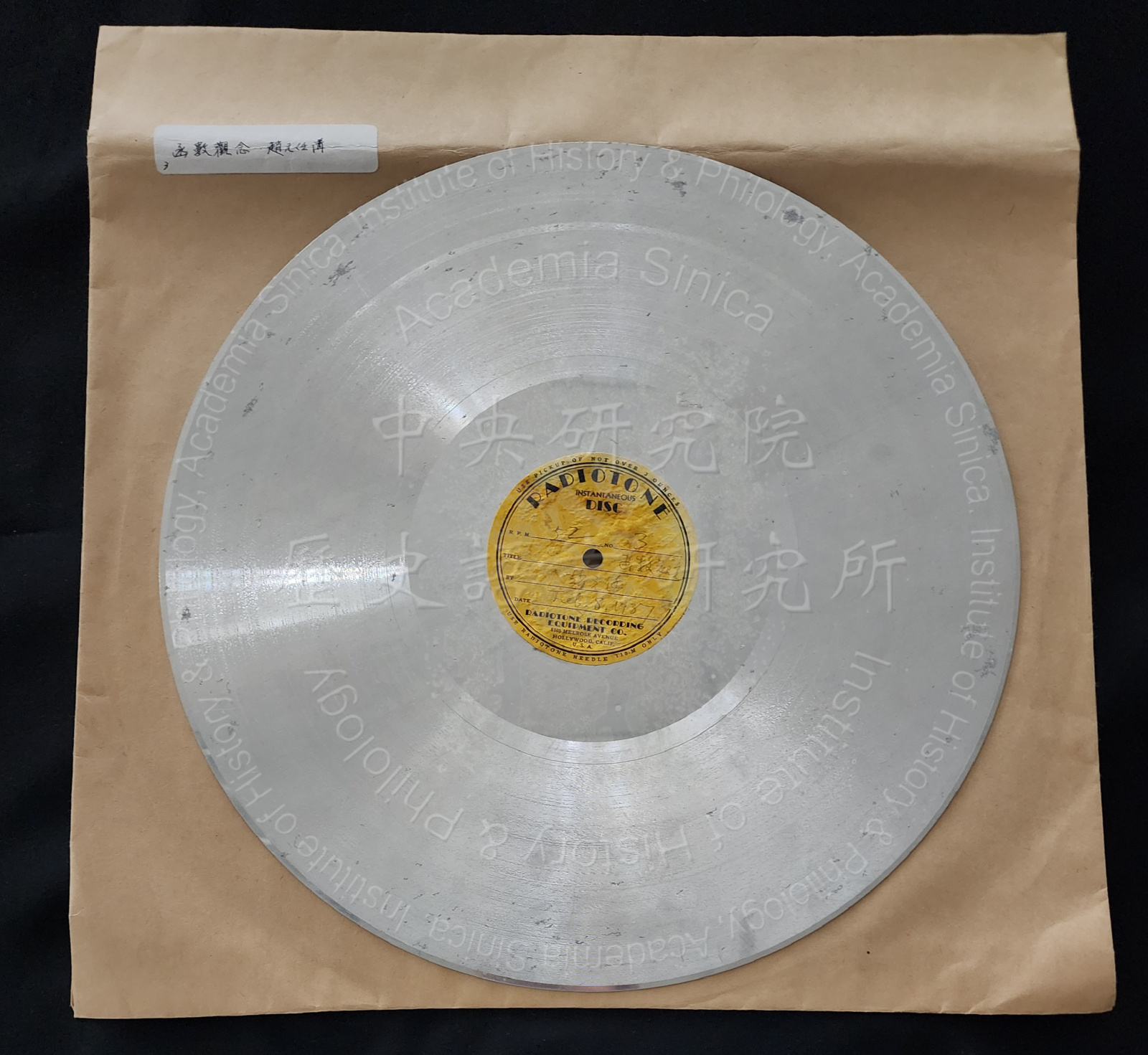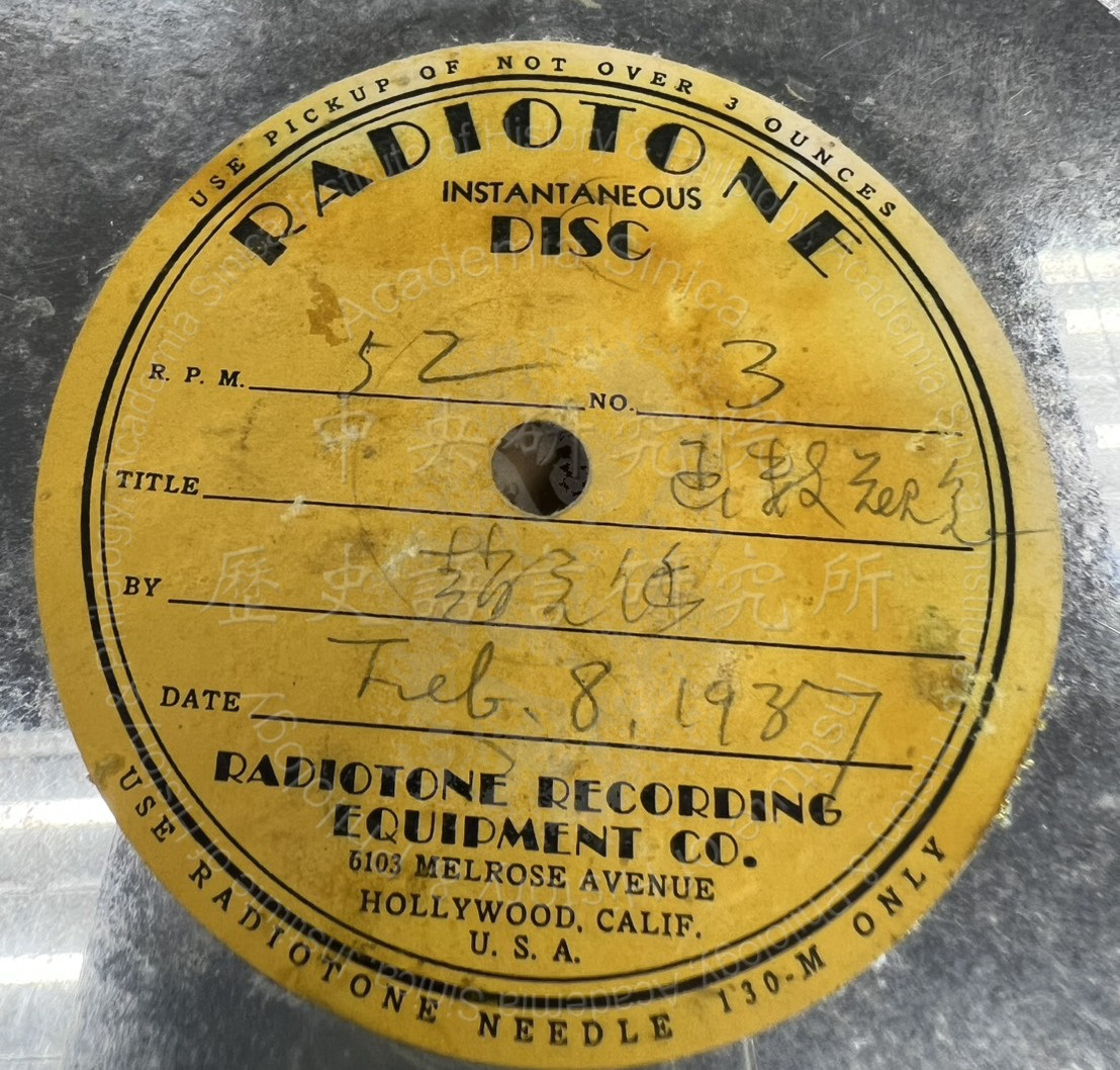檔案館藏鋁製唱片中,便有一張題名「函數觀念」,日期為1937年2月8日,講者趙元任,應即當時的廣播錄音。唱片轉速52轉,兩面分別編號3與4,許是整場演講的第三與第四部分,整張唱片保留13分鐘左右的演講內容。